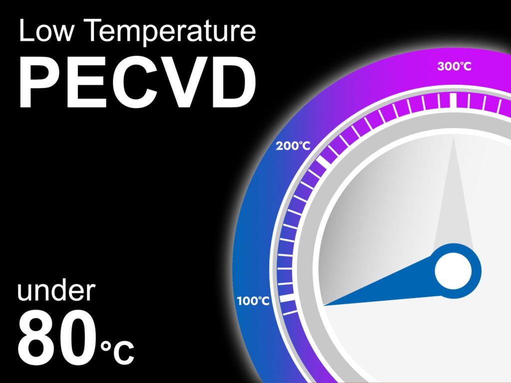 Samco’s low-temperature PECVD processes enable deposition of SiO2 and SiNx at temperatures below 80°C, ideal for thermally sensitive substrates used in MEMS, TSV, and OLED applications.
