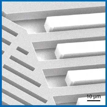 A 15 µm thick silicon layer on a silicon-on-glass (SOG) substrate was etched using the Bosch Process.