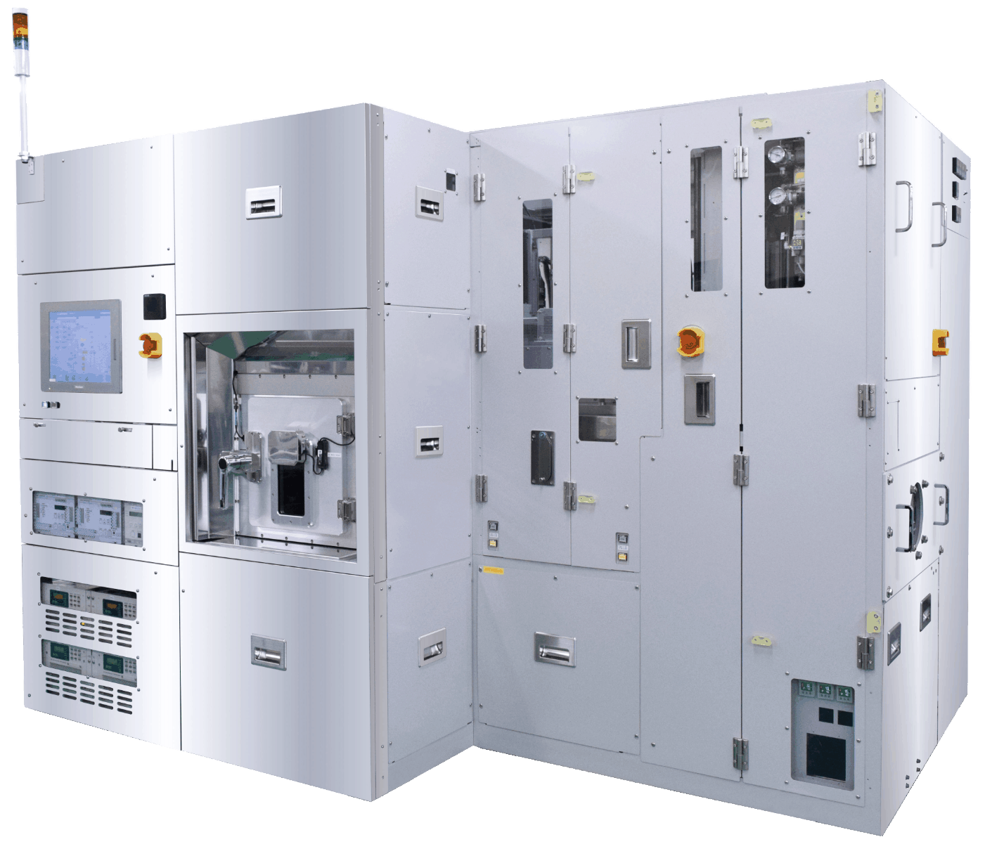The RIE-802iPC high-density plasma etching system uses an inductively coupled plasma as the discharge form. This system is equipped with a vacuum cassette chamber and two reaction chambers for full-scale production system with excellent process repeatability and stability.