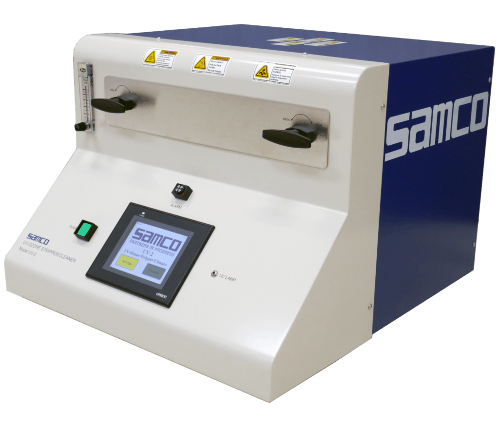 Samco’s UV Ozone Cleaners use a unique combination of ultraviolet irradiation, ozone, and stage heating to gently, yet effectively, remove organic materials from a variety of substrates, including silicon, glass, compound semiconductors (GaN, SiC, GaAs, and InP), sapphire, ceramics, and more. Today our product line includes compact benchtop and cassette type systems for both R&D and mass production customers.
